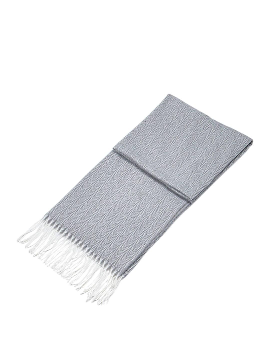 Grey Herringbone Print Luxury Soft Blanket Scarf With Tassel Edge.