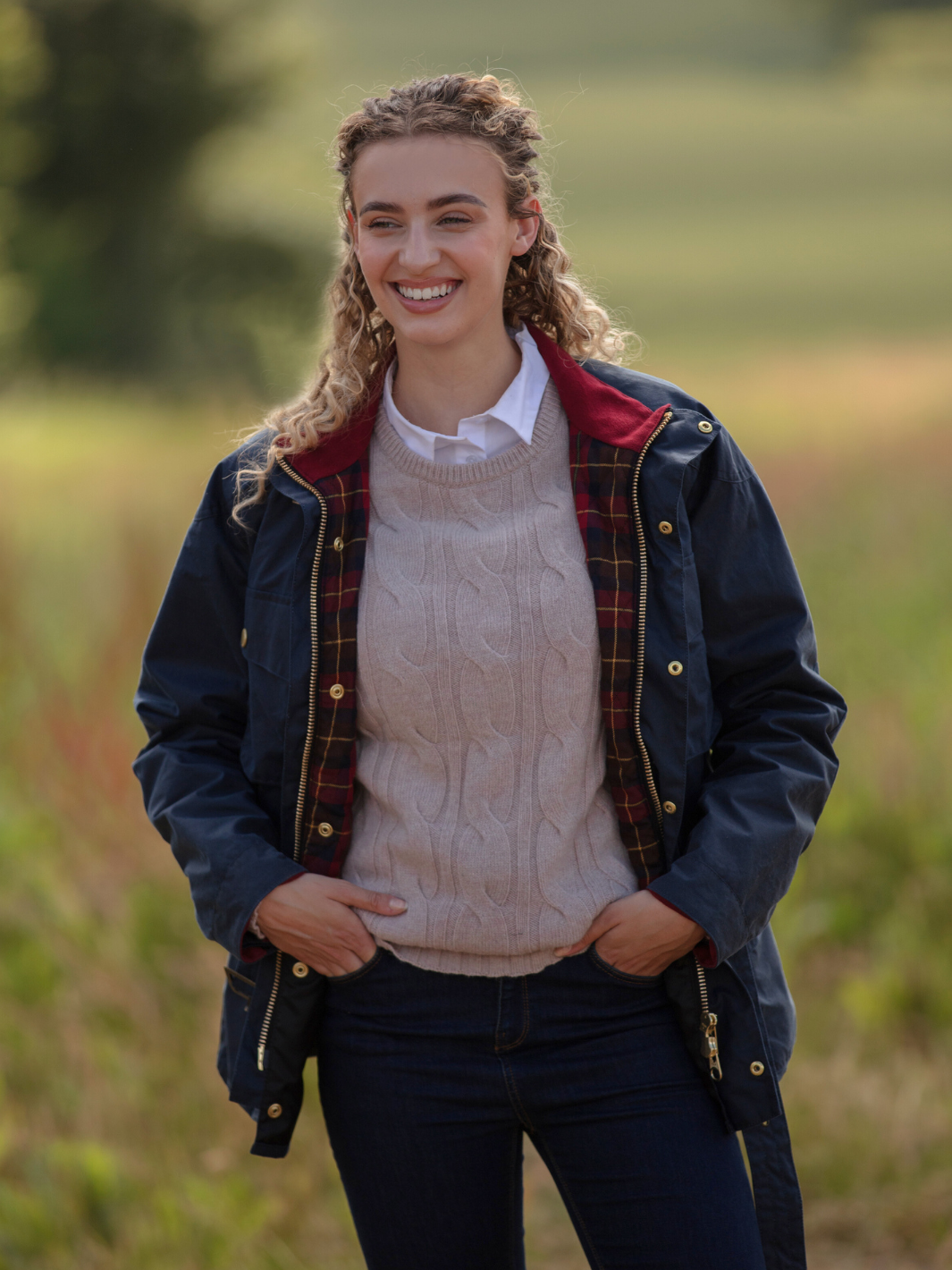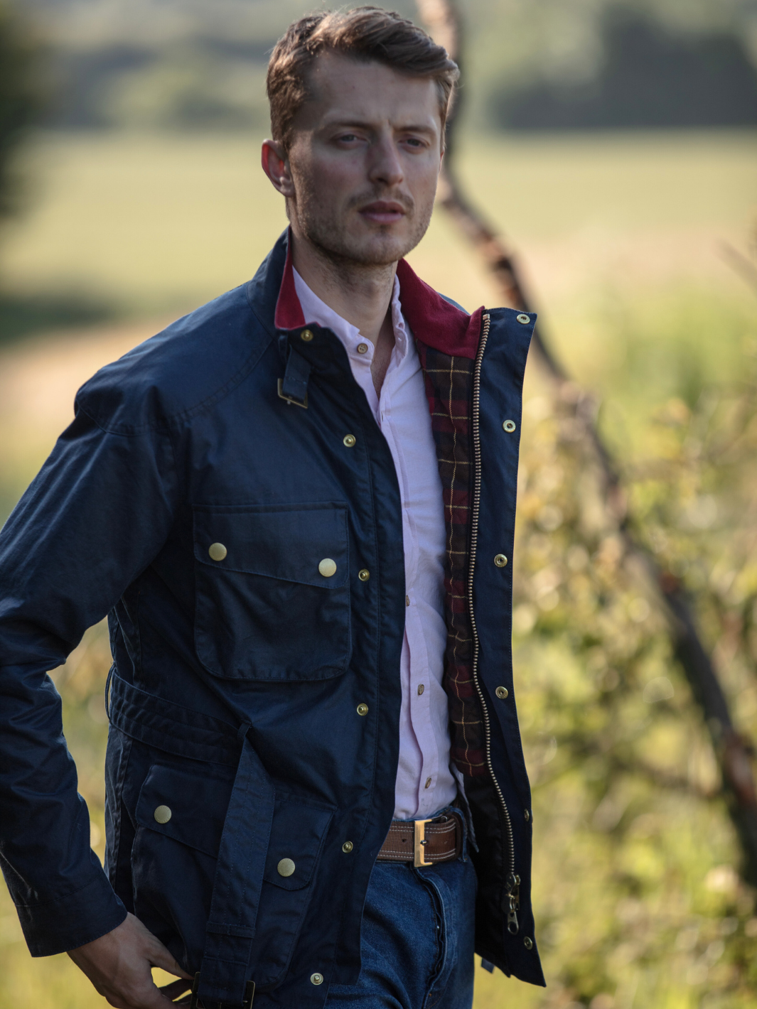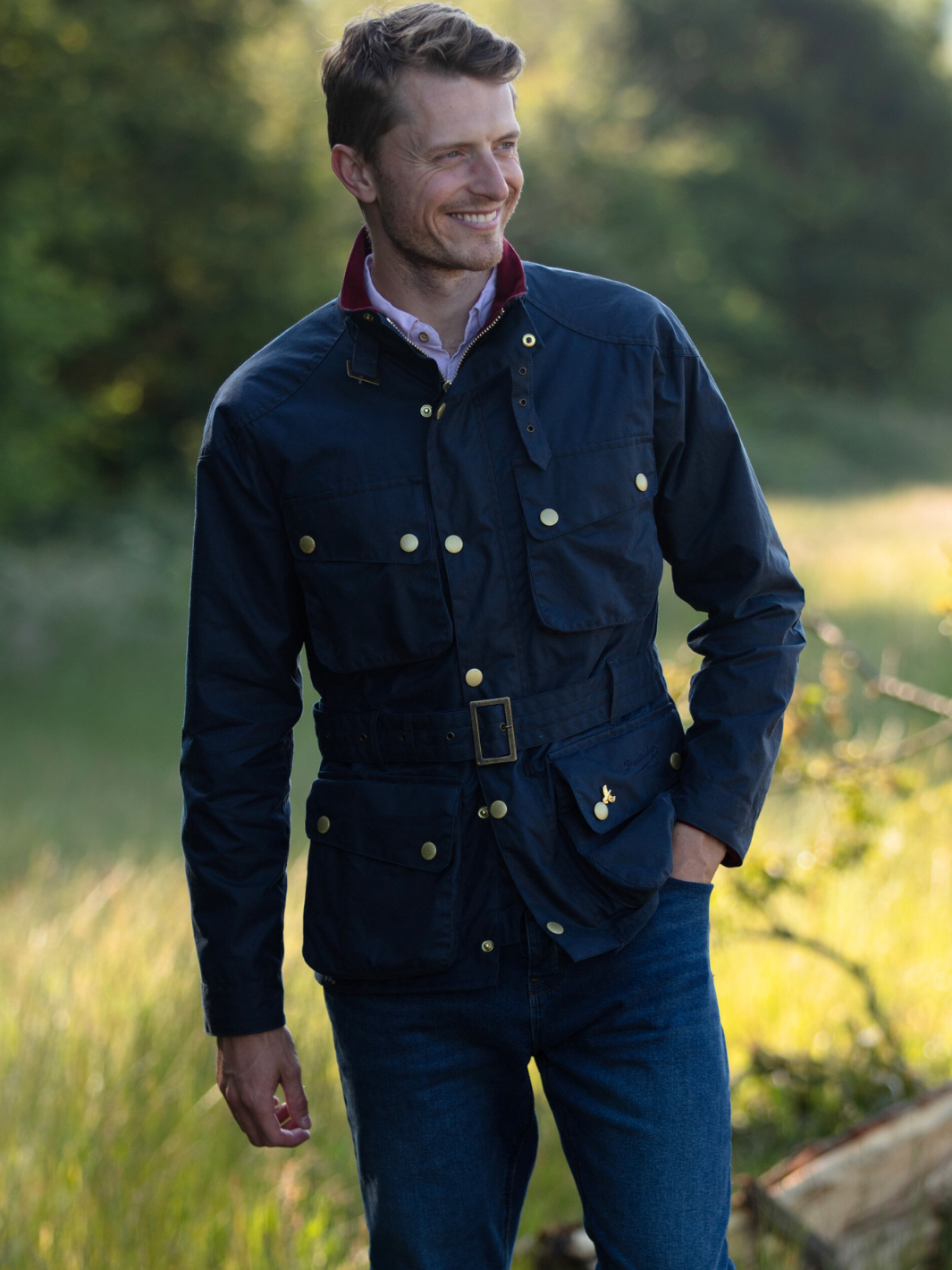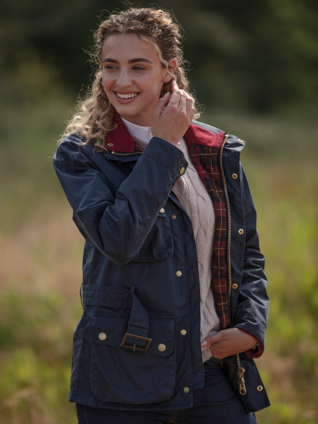 Crafted from the finest British waxed material featuring a deep ocean Navy colour, this jacket seamlessly blends tradition with contemporary flair. The cherry-coloured check lining, paired with a quilted nylon sleeve lining, offers a perfect balance of comfort and durability.