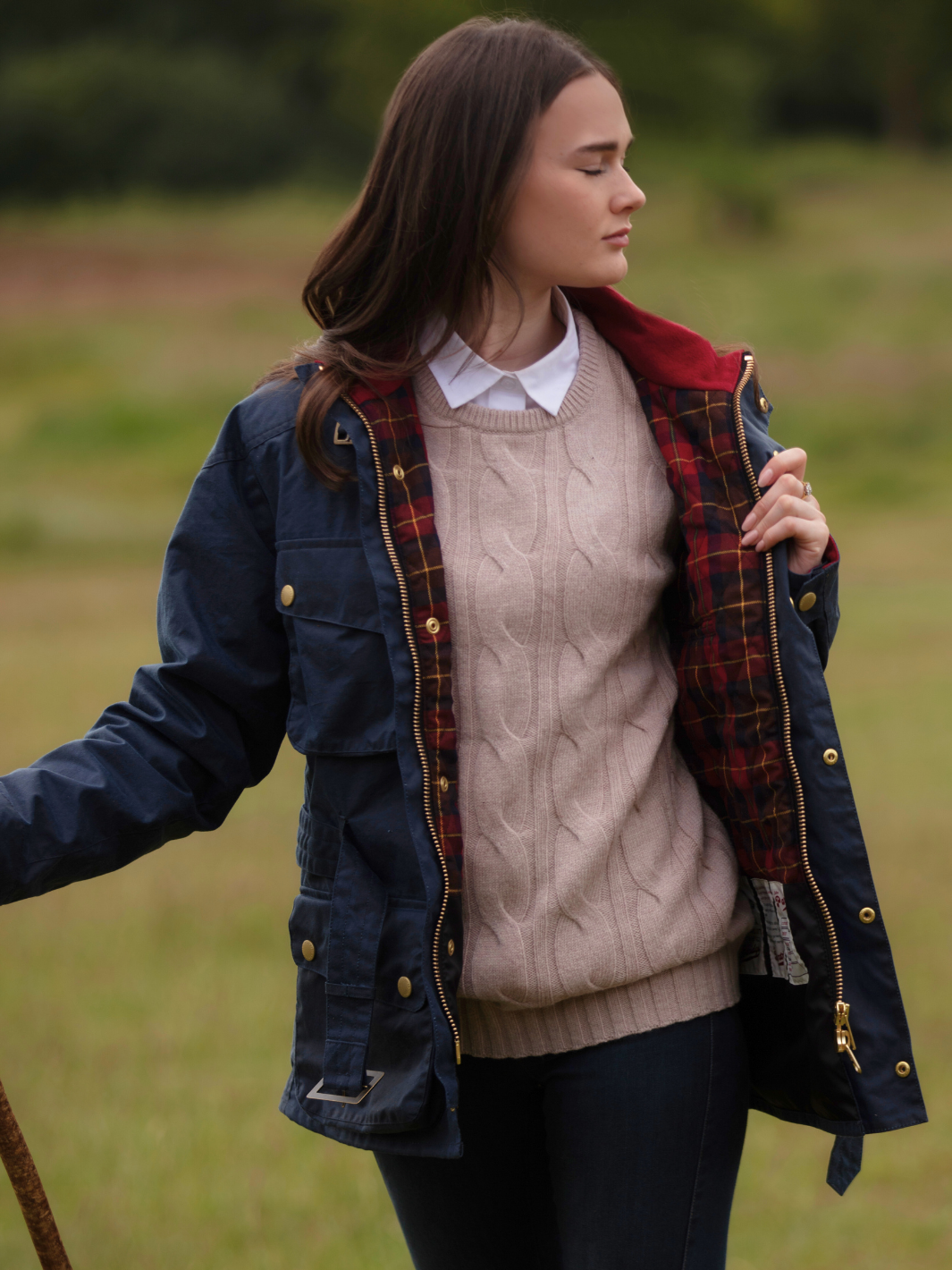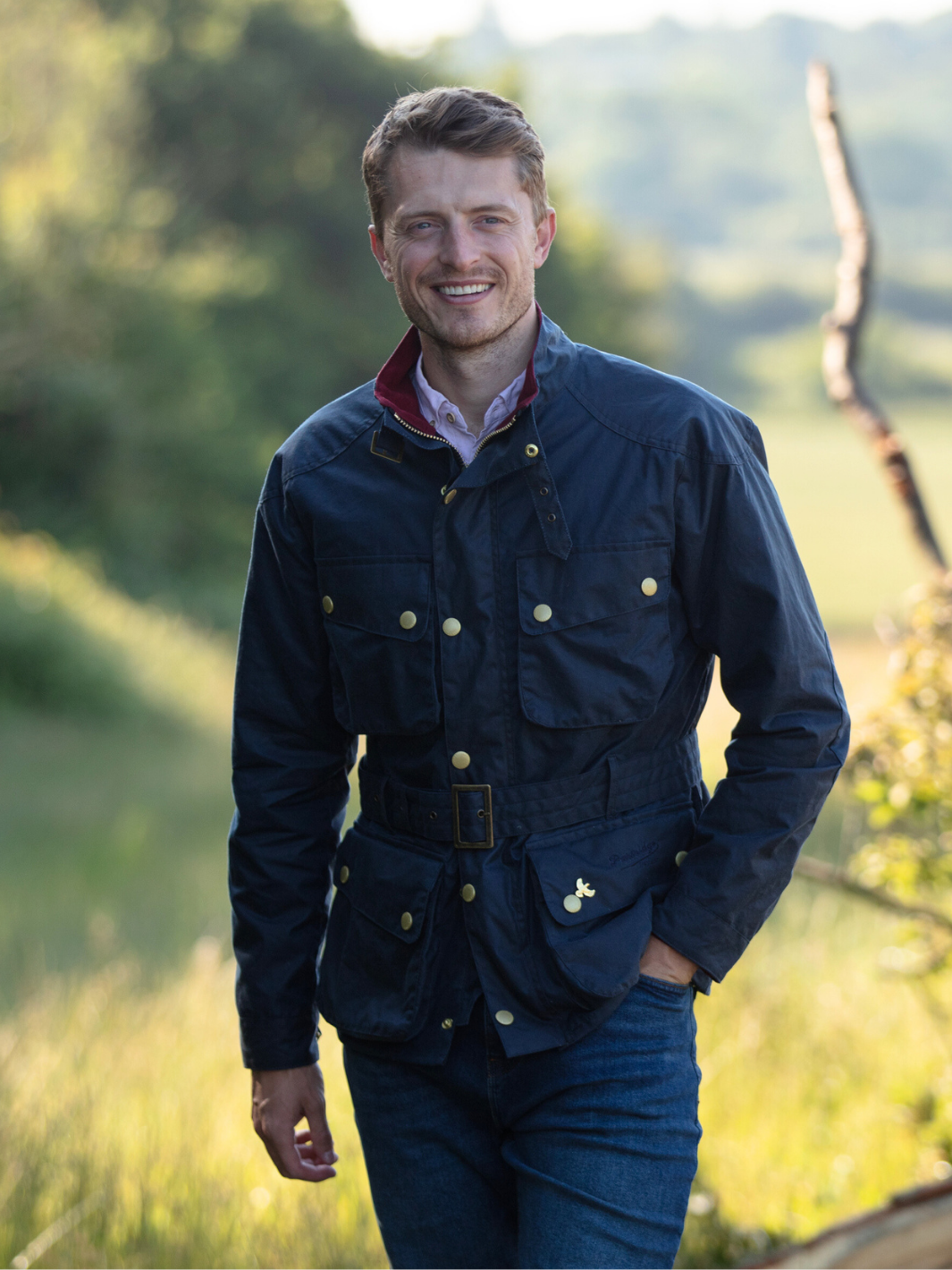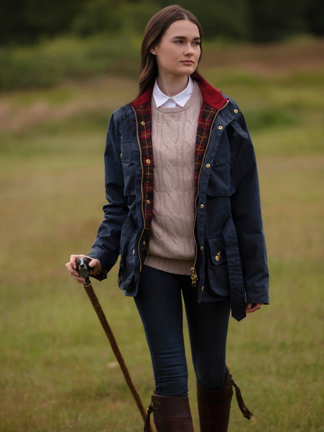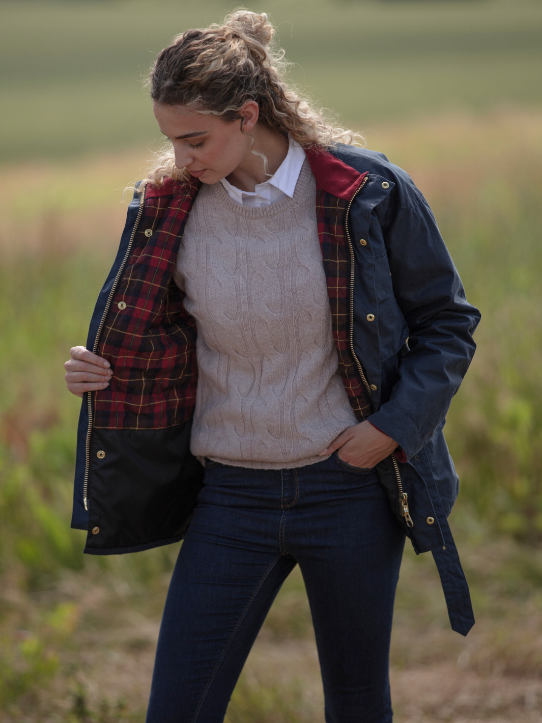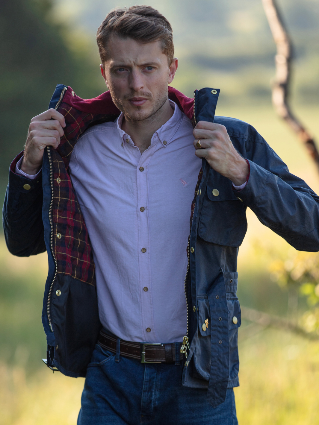 Crafted from the finest British waxed material featuring a deep ocean Navy colour, this jacket seamlessly blends tradition with contemporary flair. The cherry-coloured check lining, paired with a quilted nylon sleeve lining, offers a perfect balance of comfort and durability.