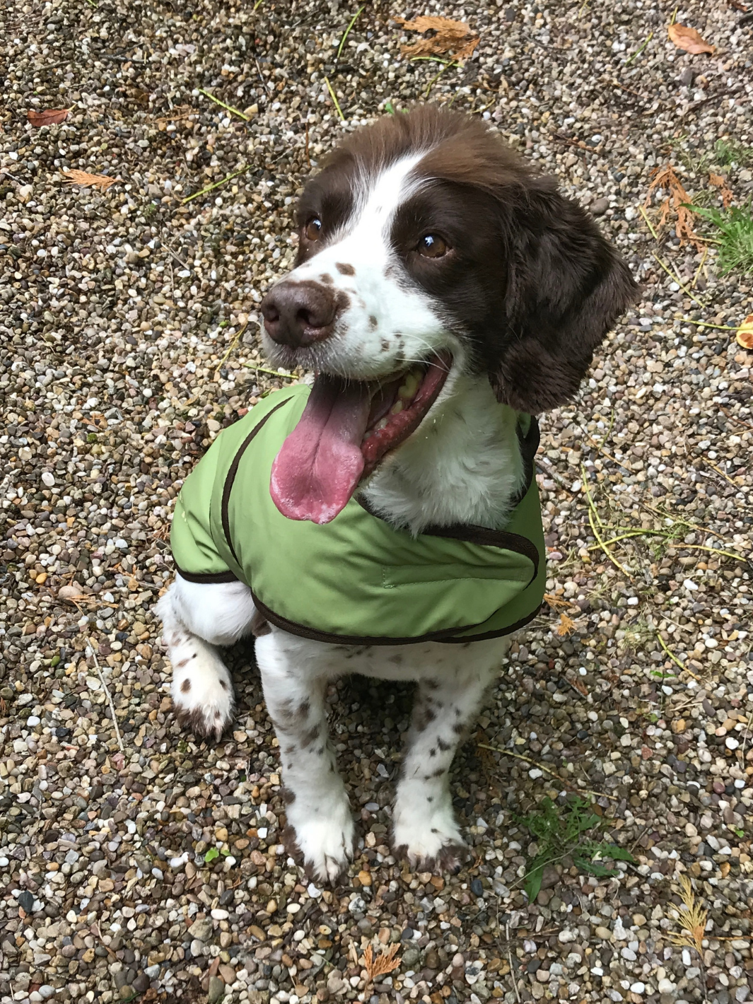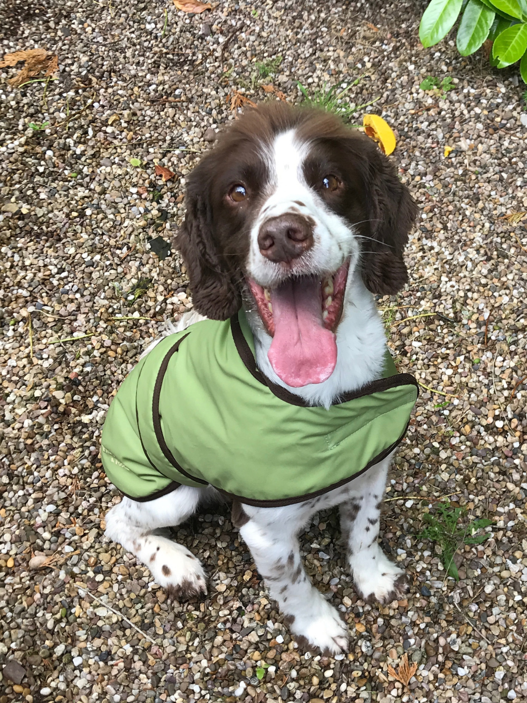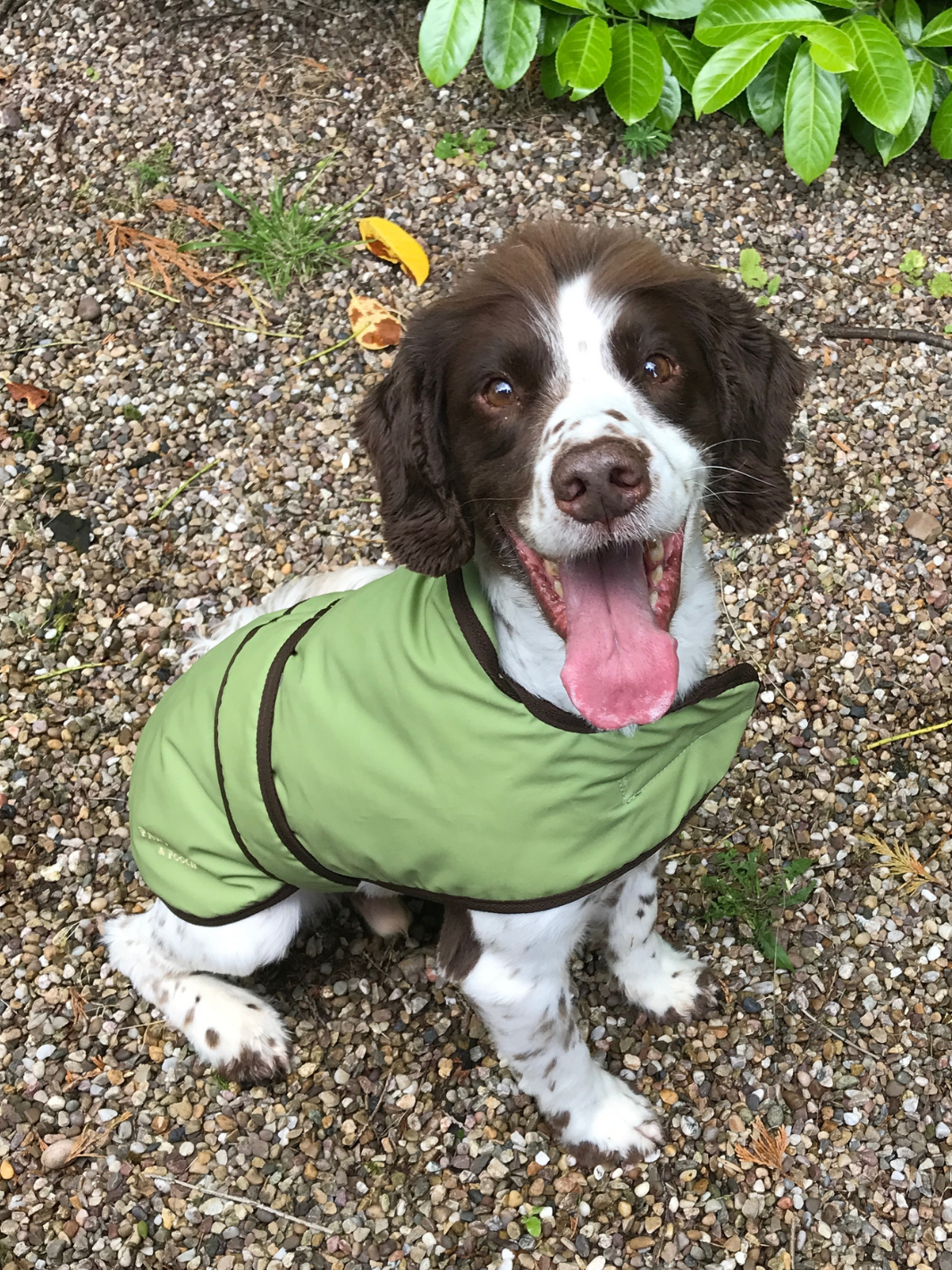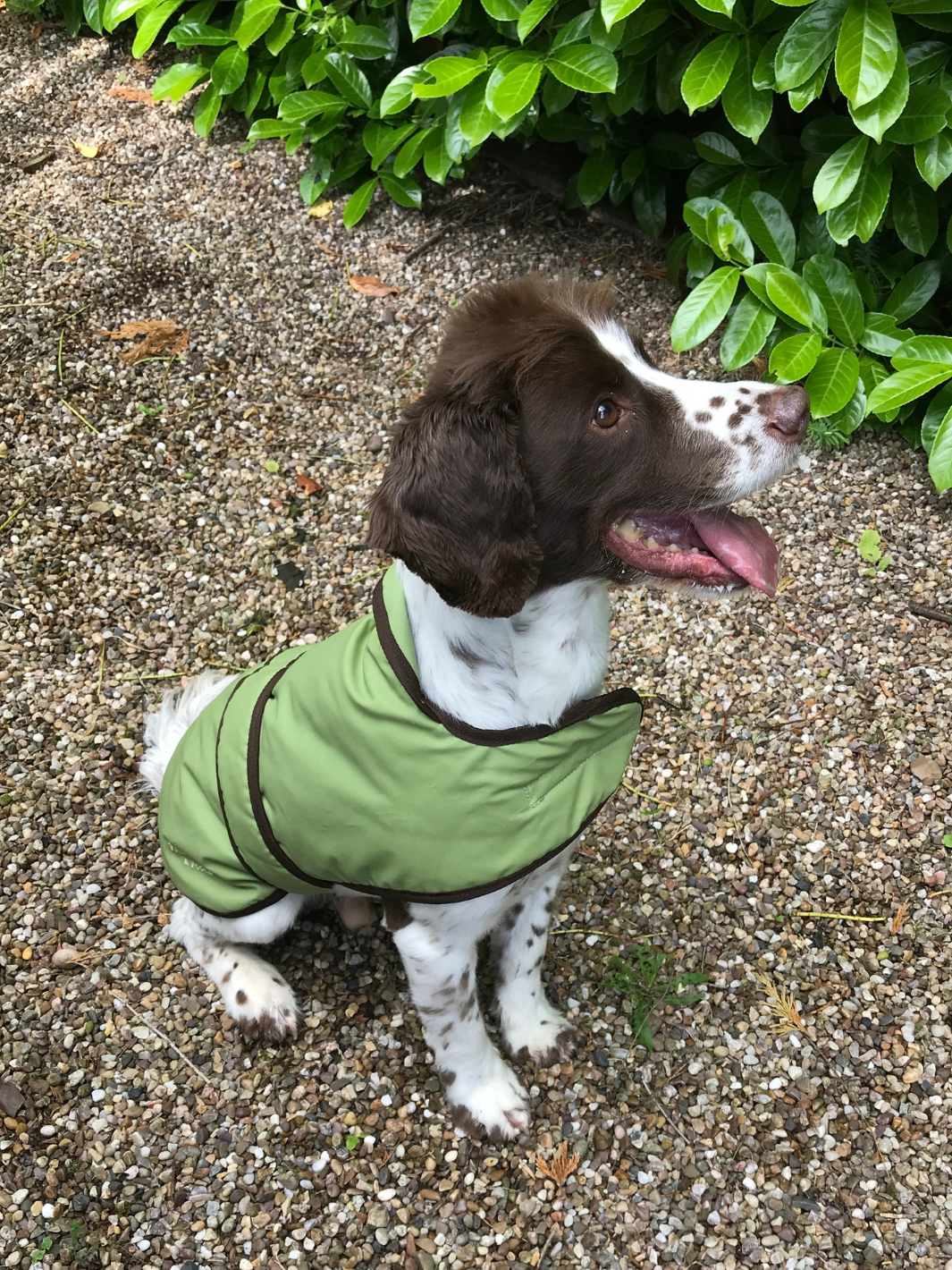Our Partridge Pooch model wears a size Medium. For the best fit, please refer to our size guide before placing your order. Give your dog the gift of style and comfort with this exquisite coat, proudly made in England.