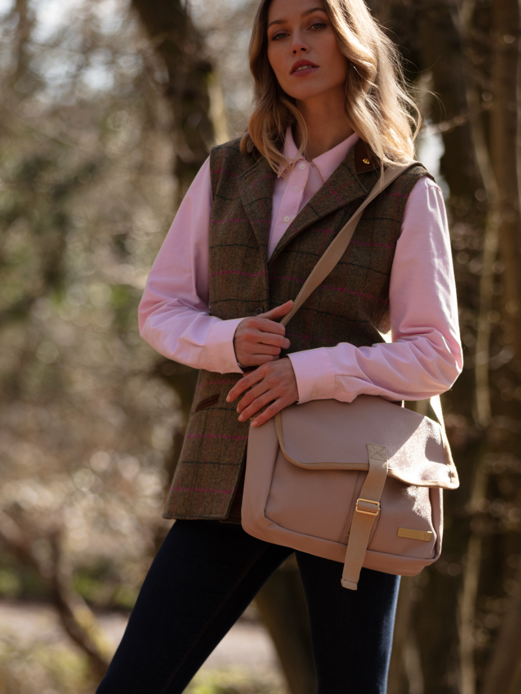 Introducing our Soft Pink Faux Leather Cartridge Bag-Inspired Bag, a delightful fusion of elegance and functionality. This meticulously crafted bag, inspired by traditional cartridge bags, is proudly made in England, showcasing the finest craftsmanship and attention to detail.